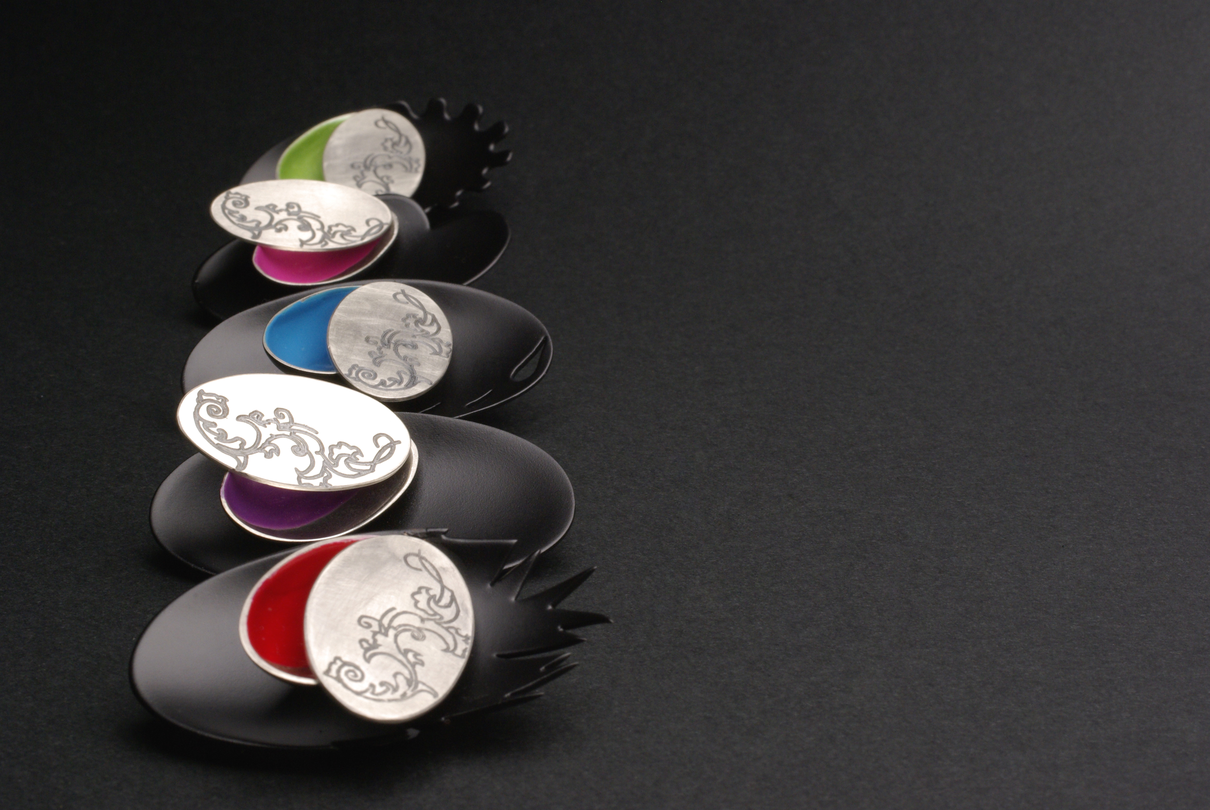A place to put your love, anger, sadness, jealousy and loneliness Published on June 12, 2012 in Jewellery & ObjectsFull resolution (3872 × 2592) ← Previous Next → A place to put your love, anger, sadness, jealousy and loneliness, brooch series, 2009, 925 silver, copper, automotive paint, enamel